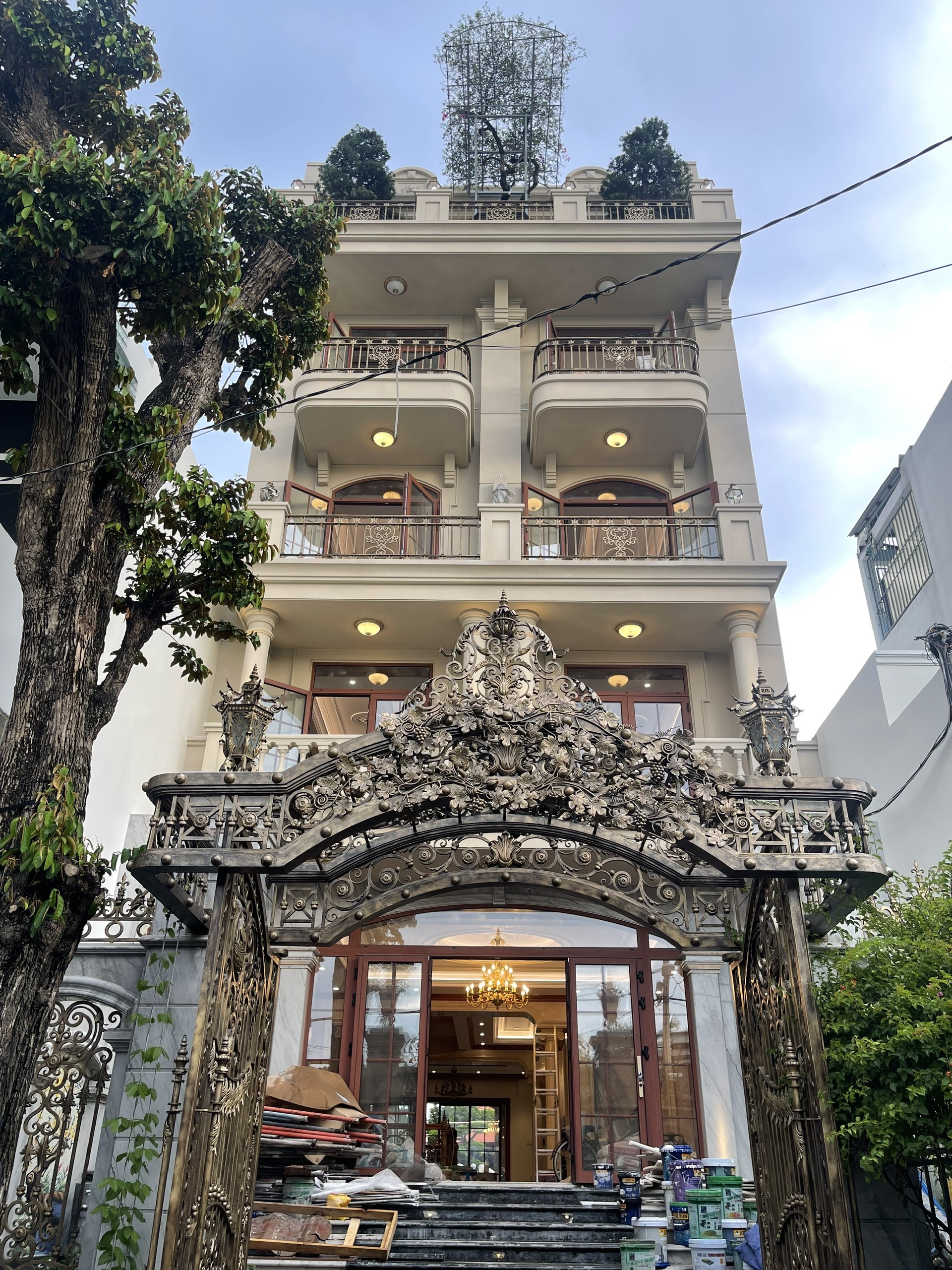 Kiến trúc tân cổ điển với tông trắng chủ đạo, hệ thống hàng rào kiên cố trang trí tranh phù điêu mạ vàng và các ban công hình bán nguyệt đẹp mắt.