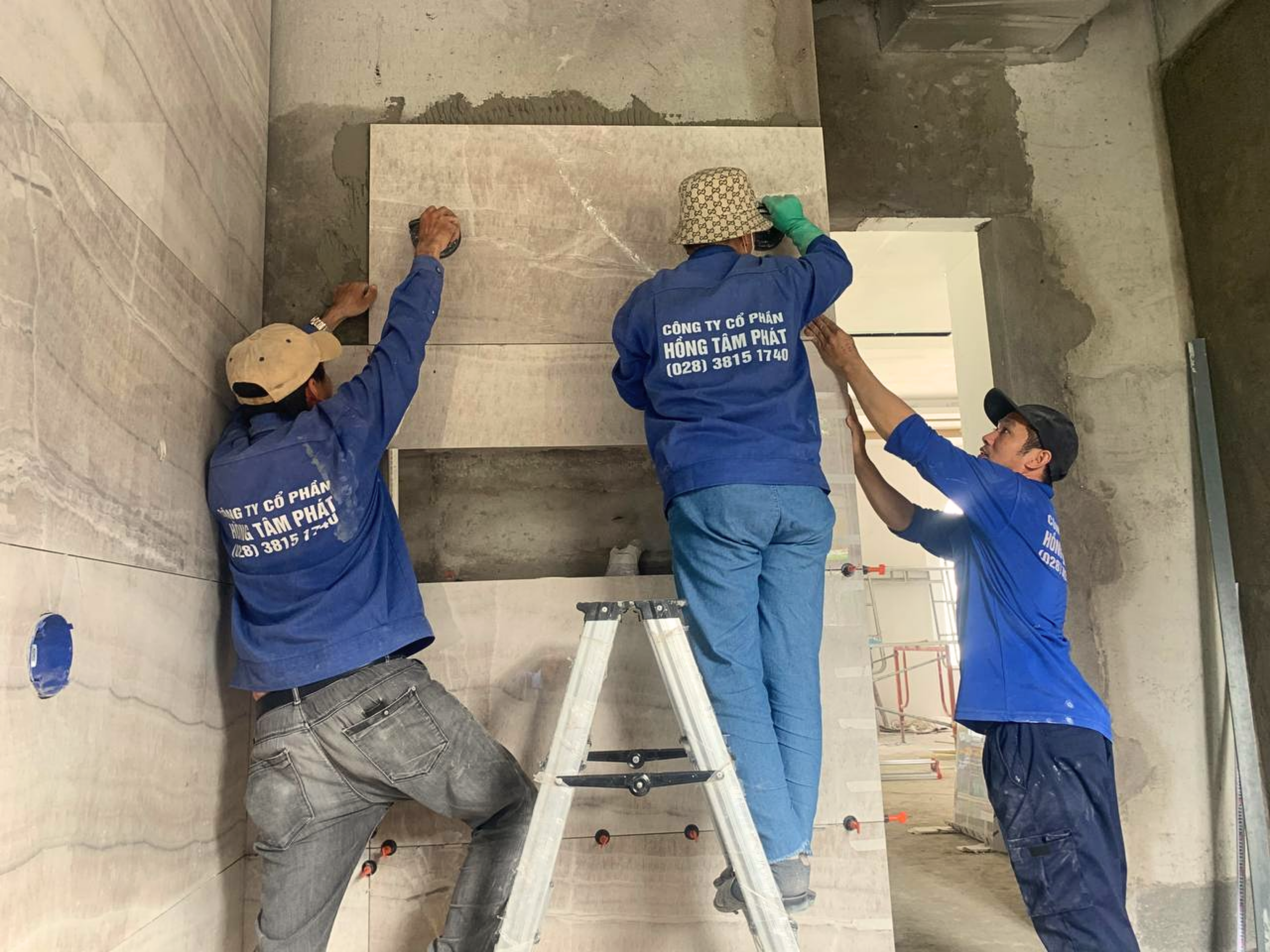Lựa chọn vật liệu hoàn thiện cao cấp: Sàn gỗ kỹ thuật hoặc đá tự nhiên thay vì gạch ceramic thông thường; tường ốp gỗ thanh lam hoặc đá bảng; trần thạch cao phẳng với line đèn âm những lựa chọn vật liệu này không đòi hỏi diện tích lớn nhưng nâng tổng thể cảm nhận không gian lên một tầm khác. Tham khảo thêm dịch vụ hoàn thiện tường và hoàn thiện sàn của HTP để hiểu các giải pháp vật liệu phù hợp.