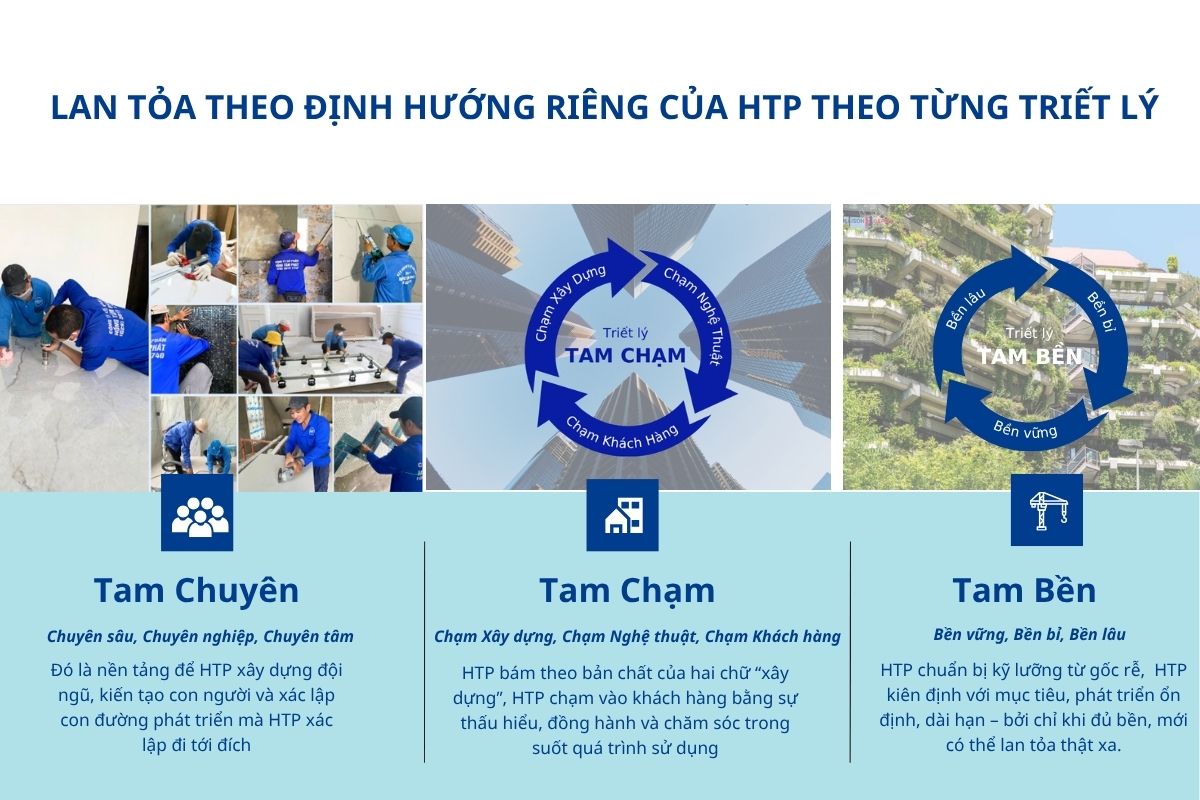 Lan tỏa” với HTP là hiệu lệnh mới, là hành động của những con người làm nghề bằng tâm – trí – nghề. Từ nội bộ đến cộng đồng, HTP tin rằng: “Dùng HTP chính là đang giúp lan tỏa HTP.” Bởi mỗi hành động, mỗi công trình, mỗi con người HTP đều đang góp phần gieo những giá trị thật đến cộng đồng.